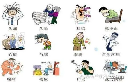 2:眩晕:血压高的人最常见的就是眩晕,有时晕头转向的,无法正常的站立,眩晕严重的会引起偏瘫的症状,所以当头晕的时候 ,及时的坐下,不要走动,以免摔倒引起半身不遂。 3:失眠多梦:血压升高,会引起大脑的异常兴奋,造成入睡困难,出现失眠的状况,而且在晚上睡觉的时候经常做梦,经常半夜醒来,影响正常的睡眠质量,加快血压的升高。
